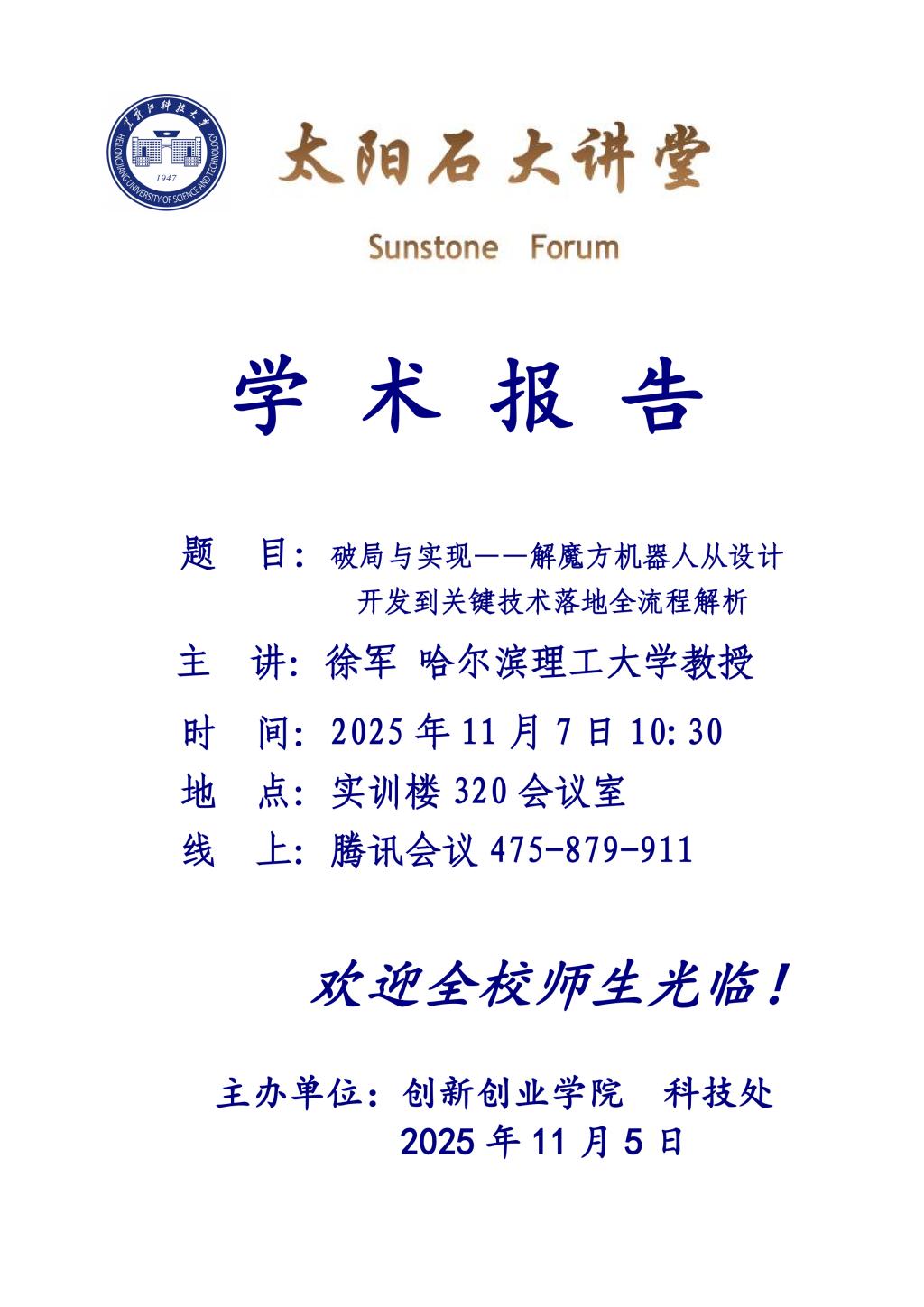 11月21日至23日,第十八届全国大学生创新年会在苏州举办。作为国家级大学生创新创业训练计划的核心年度展示交流平台,会议已成为覆盖全国、影响深远、学生参与最广泛、水平最高的本科教学改革标志性活动之一。本届年会由教育部高等教育司指导,以“创无止境·‘新’潮澎湃”为主题,来自全国28个省(市、区)的1200余名高校师生代表、国家级大学生创新训练计划专家组成员、省级教育行政部门负责同志和产业界嘉宾齐聚现场。年会现场经过层层评审选拔,由我校教师付强指导,付凯、周逍宇等同学完成的国家级大...